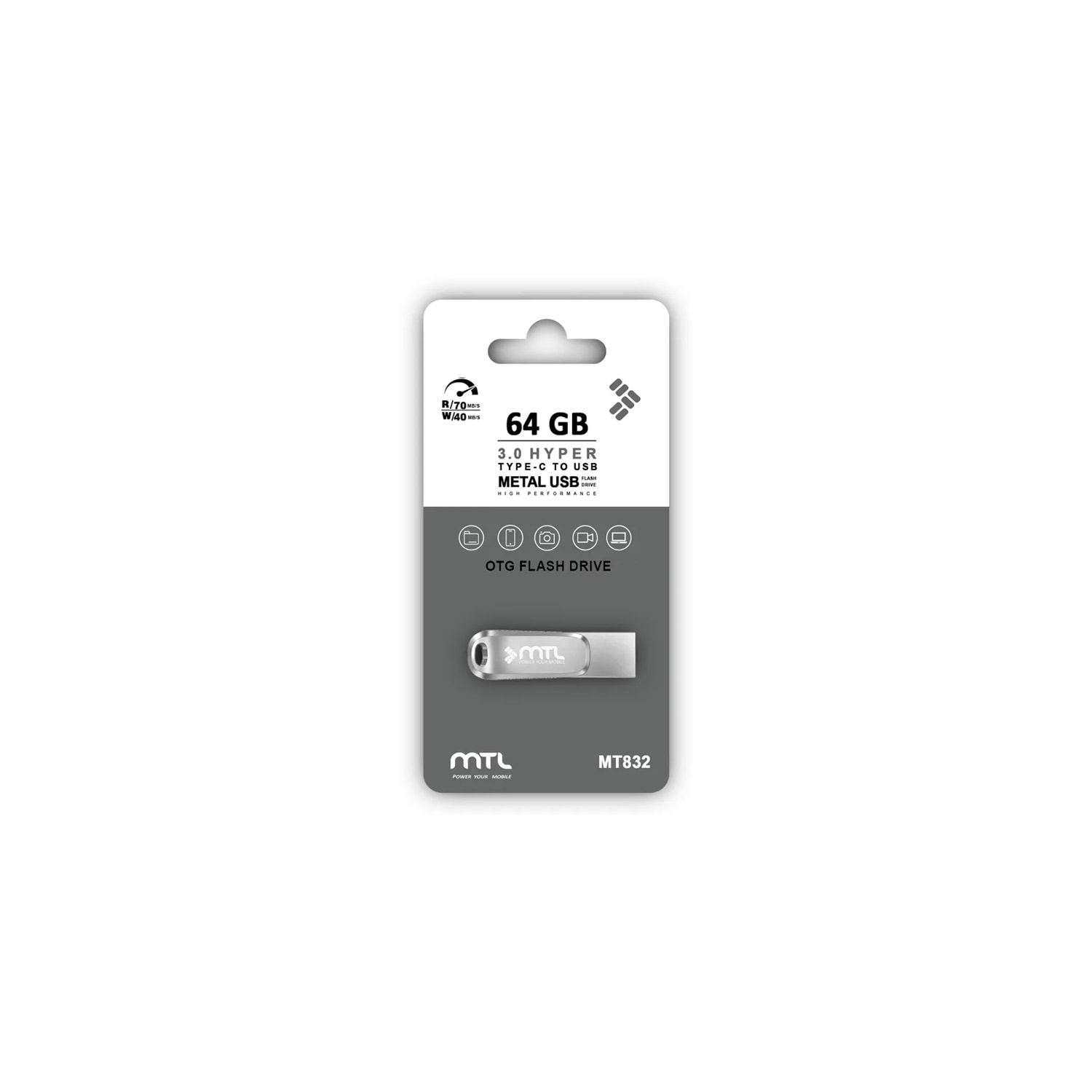 MT832 64GB Hyper Metal Flash Bellek, hem USB 3.0 hem de Type-C giriş desteği ile telefon, tablet ve bilgisayarlarda kullanılabilen hızlı ve güvenilir bir depolama çözümüdür. Dayanıklı metal gövdesi ile uzun ömürlü kullanım sunar.