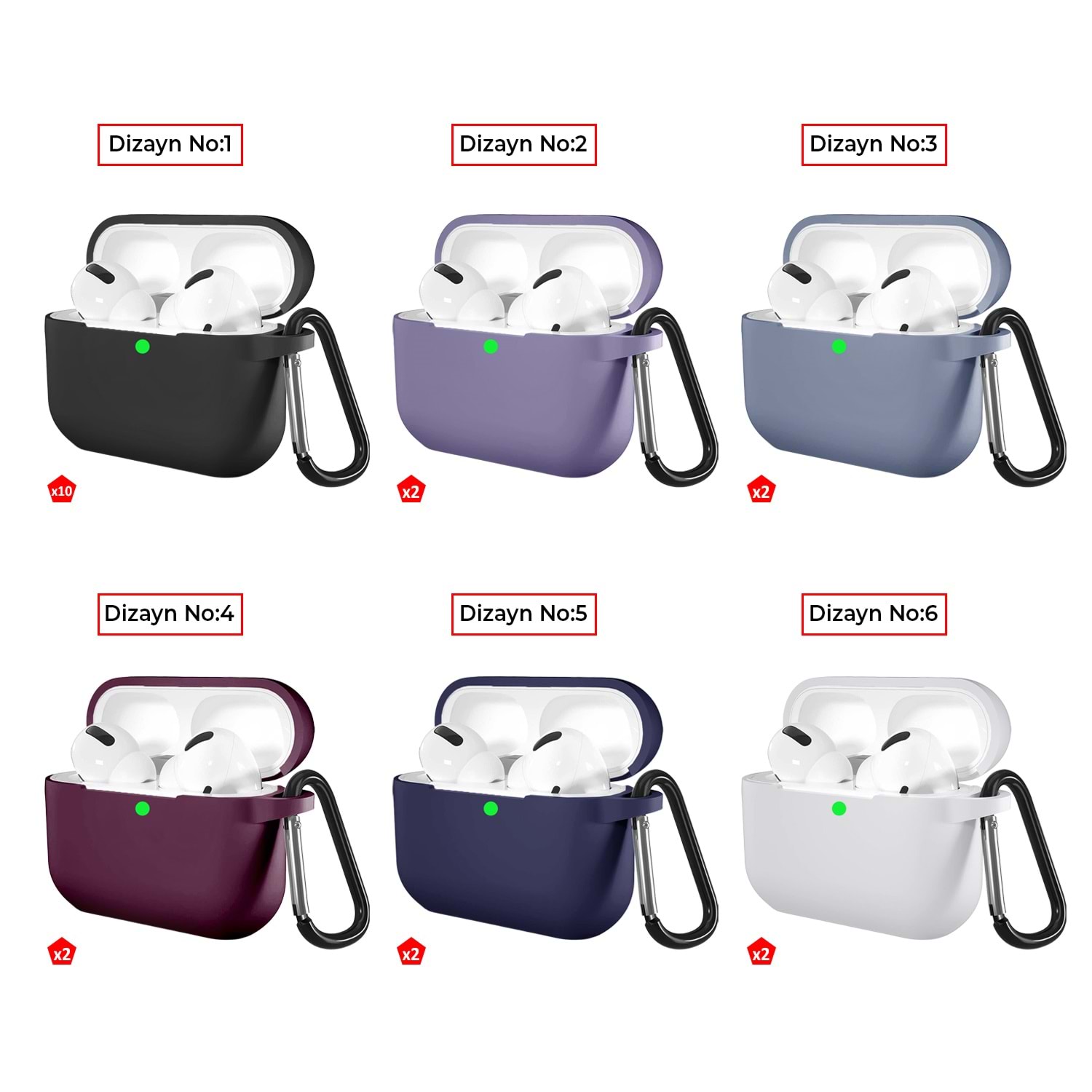 SOO-154 AirPods Pro askılı silikon kılıf, farklı renk alternatifleriyle sunulur.