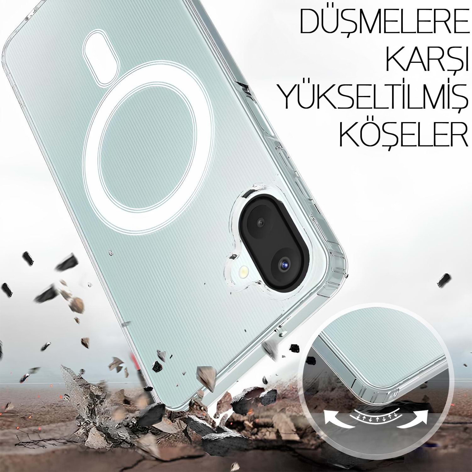 Samsung A07 MTL Safe Silikon Kılıf, cihazınızı darbelere, çiziklere ve düşmelere karşı maksimum seviyede korumak için özel olarak tasarlanmıştır. Şeffaf yapısı sayesinde telefonunuzun orijinal tasarımını ön plana çıkarırken, MagSafe uyumlu halkasıyla araç tutucu ve magsafe cüzdanı daha pratik hale getirir. Esnek silikon malzeme ile kolayca takılıp çıkarılır, köşe korumaları sayesinde ekstra güvenlik sağlar. Günlük kullanımda konfor sunan bu kılıf, uzun ömürlü yapısı ile hem şıklık hem de dayanıklılığı bir arada sunar.