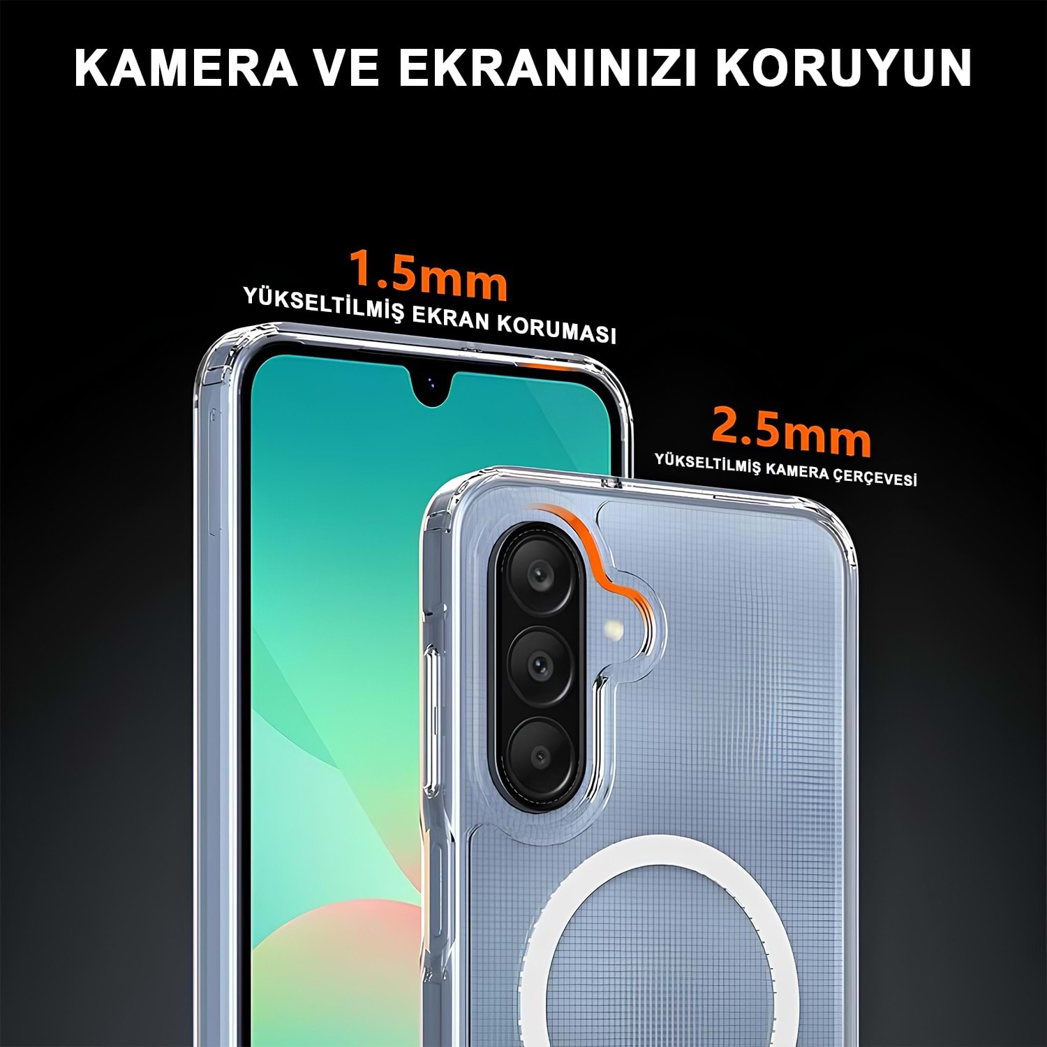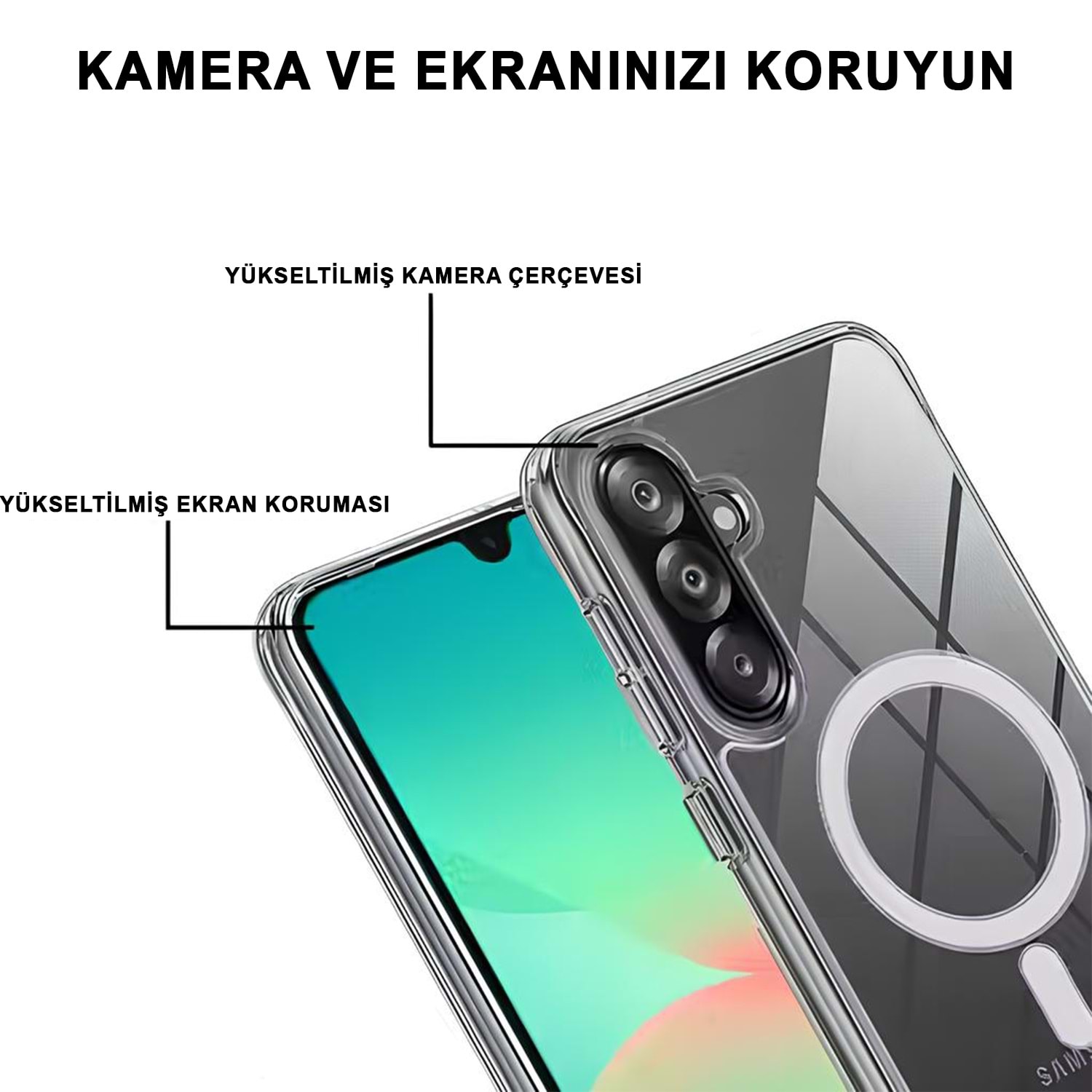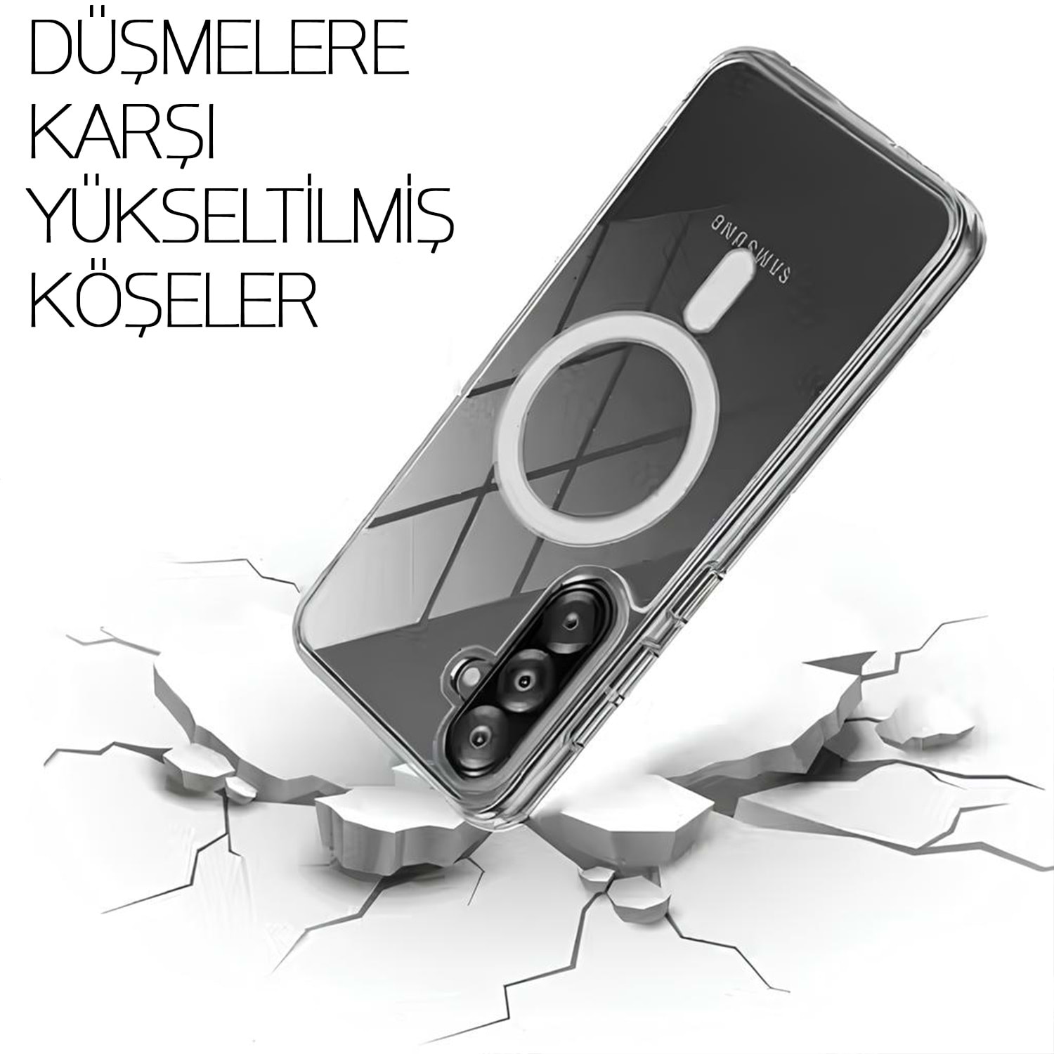 Samsung A17 MTL Safe Silikon Kılıf, telefonunuzu darbelere, çizilmelere ve günlük aşınmalara karşı etkin şekilde korumak için tasarlanmıştır. Şeffaf yapısı sayesinde cihazınızın orijinal görünümünü korur, MagSafe uyumlu halkasıyla magsafe aksesuarları destekler. Esnek silikon malzemesi sayesinde takıp çıkarması kolaydır ve köşe korumaları ile ekstra güvenlik sağlar.