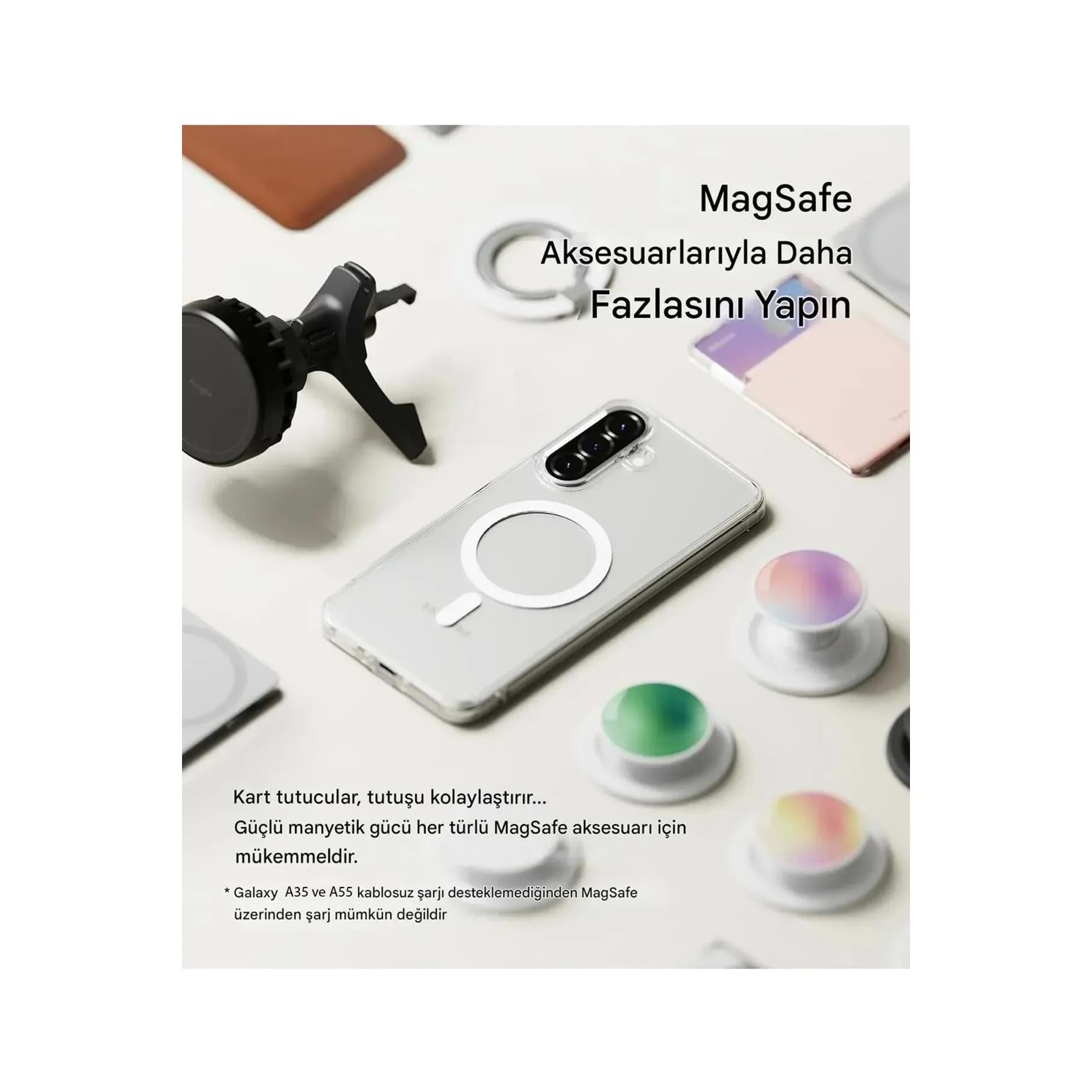 - MagSafe Uyumlu: Kılıf, MagSafe aksesuarlarıyla sorunsuz şekilde çalışır.Telefonun Magsafe şarj özelliği olmadığı için şarj özelliği çalışmaz.