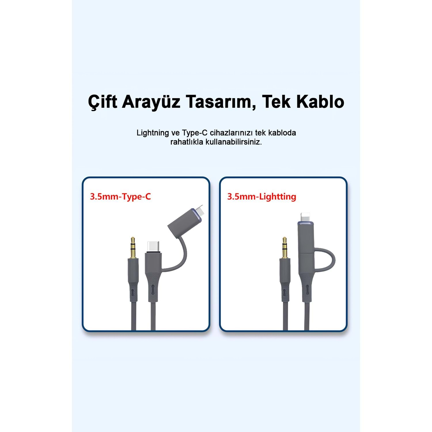 - 2in1 bağlantı: Type-C + Lightning → 3.5mm AUX
