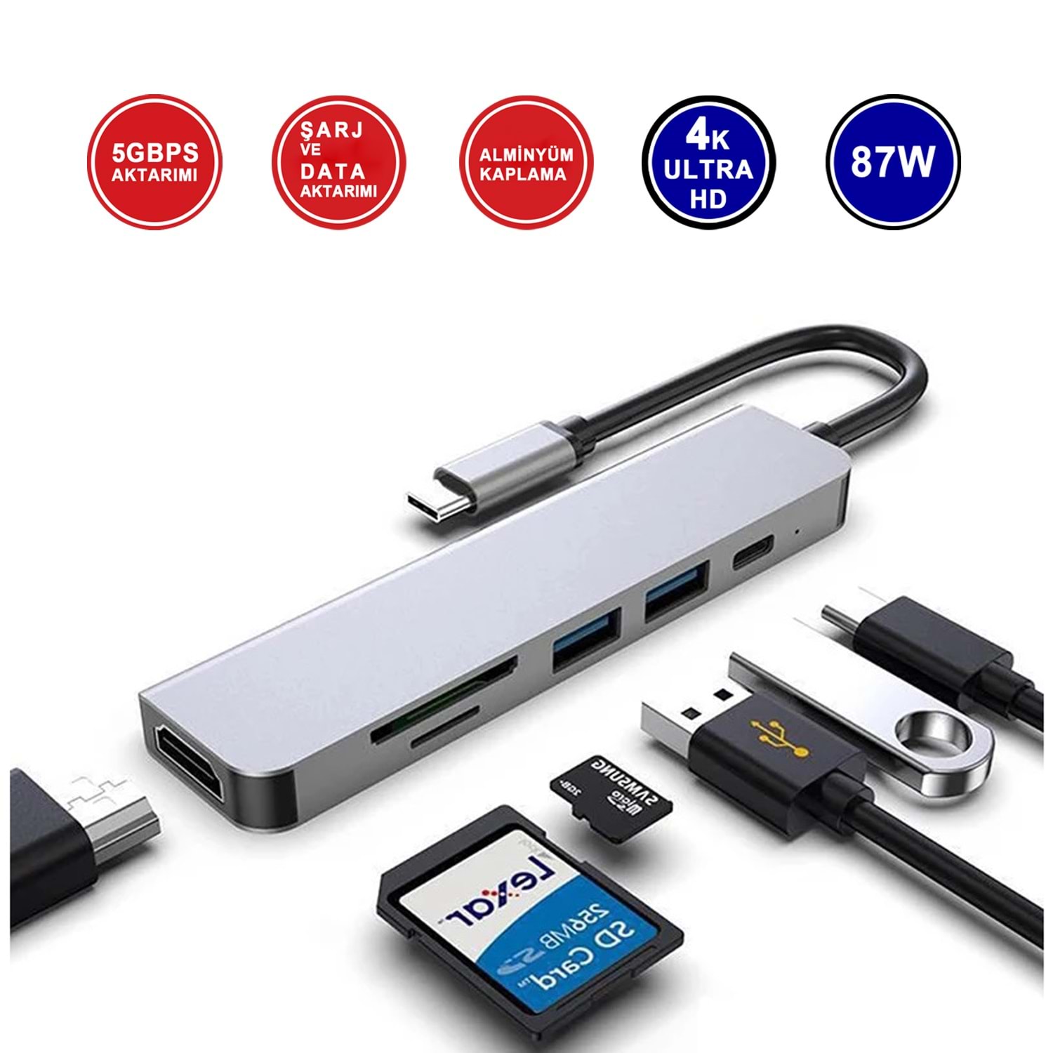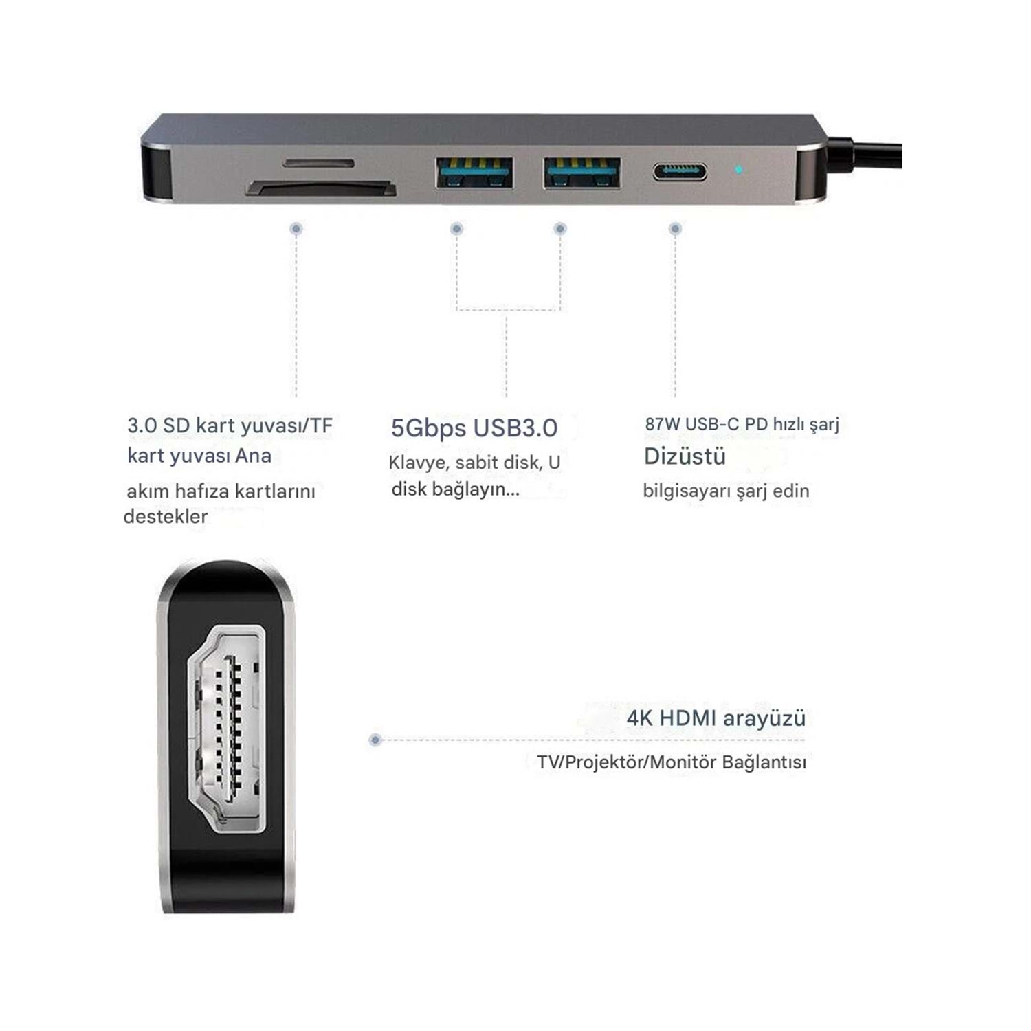 MT8901 7in1 Type-C Hub HDMI Girişli Çoklu Çevirici Adaptör