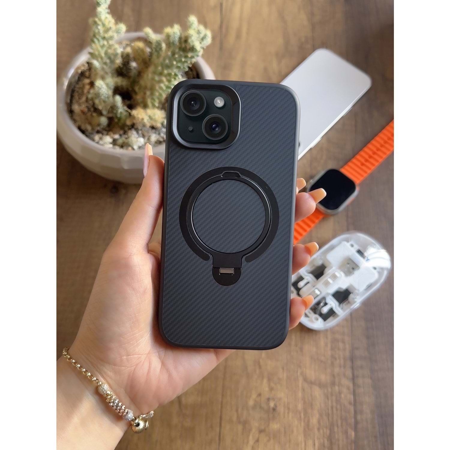 IPHONE 14 MAGSAFE UYUMLU STANDLI KARBON SOO-700 SİLİKON KILIF