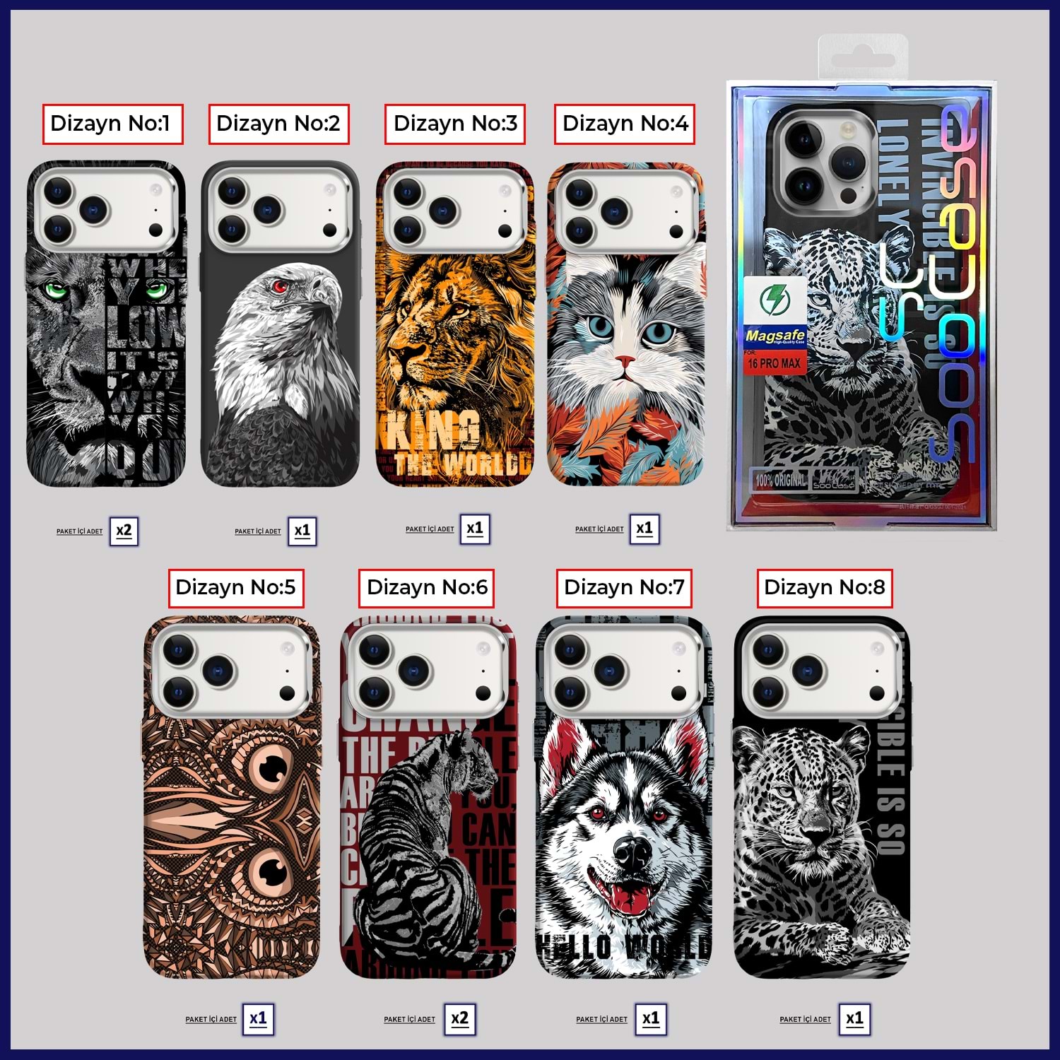 SooCase SOO-740 hayvan desenli MagSafe iPhone 16 Pro kılıf, hem premium bir görünüm hem de günlük kullanımda güvenilir koruma arayan kullanıcılar için ideal bir tercihtir. MagSafe aksesuarlarla kusursuz uyum sağlar.