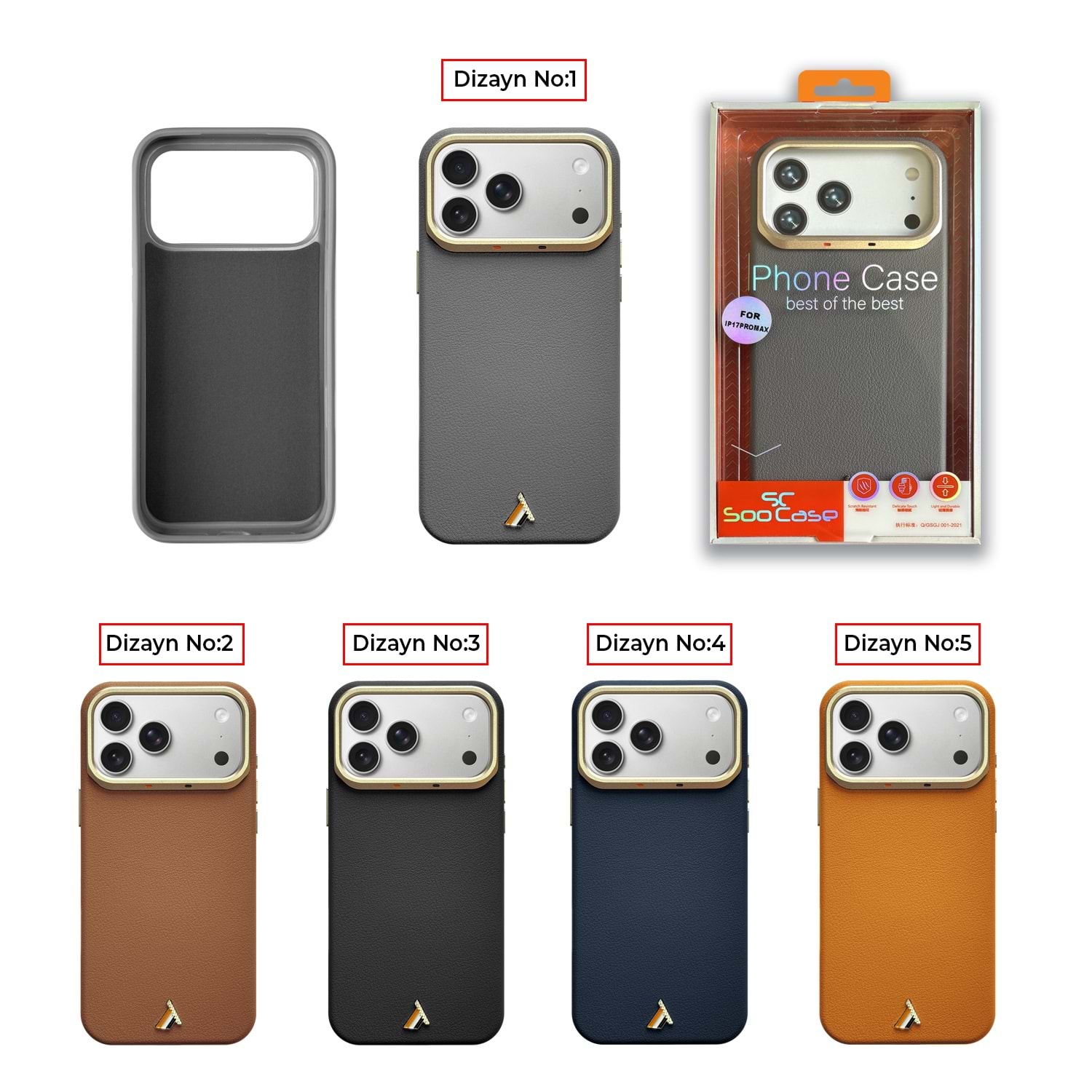 İPHONE 16 PRO MAGSAFE UYUMLU DERİ GÖRÜNÜMLÜ PREMİUM SOO-804 SİLİKON TELEFON KILIF - GRI