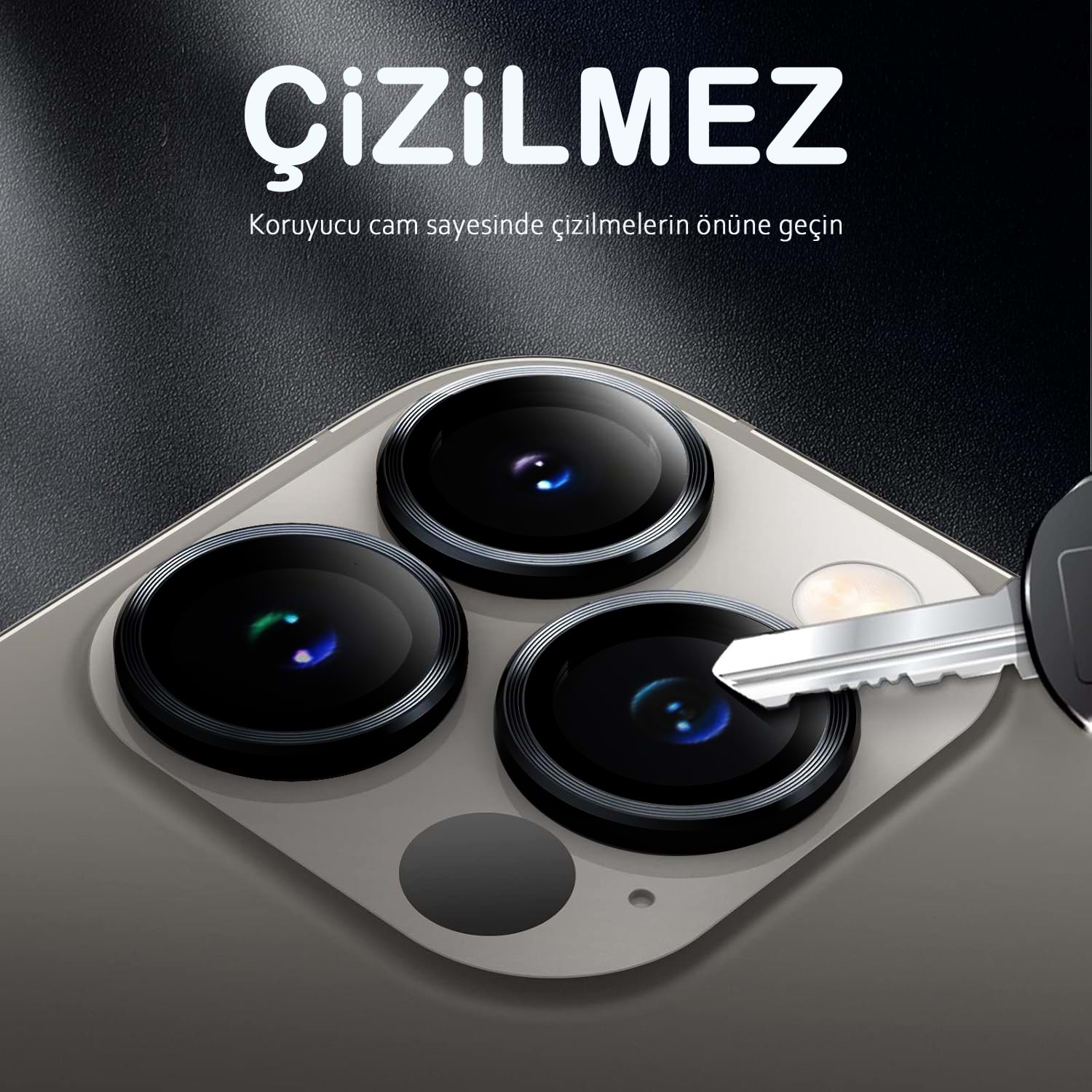 iPhone 13 Pro ve iPhone 13 Pro Max için tasarlanan safir lens koruma, kamera adasını günlük çiziklere, toza ve darbelere karşı korumayı hedefleyen şeffaf ve yüksek dayanımlı bir kaplamadır. Optik netliği korur, flaşla çekimlerde istenmeyen yansımaları azaltmaya yardımcı olur ve kılıflarla uyumlu ince profil sunar.