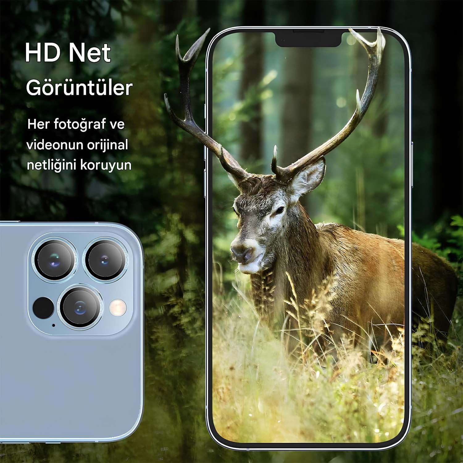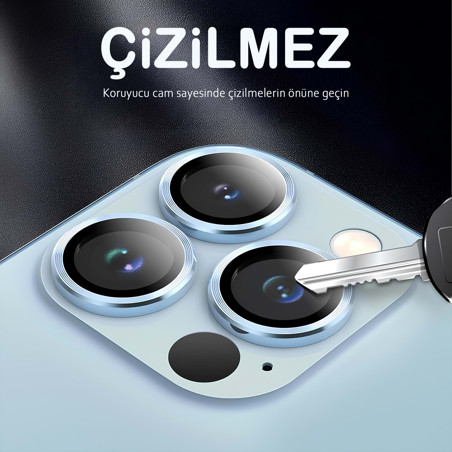 iPhone 13 Pro ve iPhone 13 Pro Max için tasarlanan safir lens koruma, kamera adasını günlük çiziklere, toza ve darbelere karşı korumayı hedefleyen şeffaf ve yüksek dayanımlı bir kaplamadır. Optik netliği korur, flaşla çekimlerde istenmeyen yansımaları azaltmaya yardımcı olur ve kılıflarla uyumlu ince profil sunar.