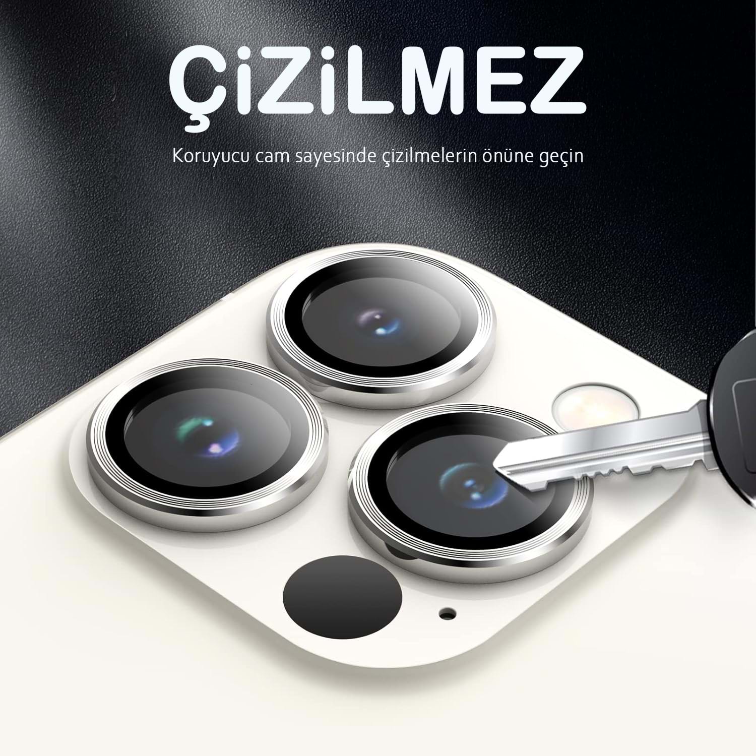 iPhone 13 Pro ve iPhone 13 Pro Max için tasarlanan safir lens koruma, kamera adasını günlük çiziklere, toza ve darbelere karşı korumayı hedefleyen şeffaf ve yüksek dayanımlı bir kaplamadır. Optik netliği korur, flaşla çekimlerde istenmeyen yansımaları azaltmaya yardımcı olur ve kılıflarla uyumlu ince profil sunar.