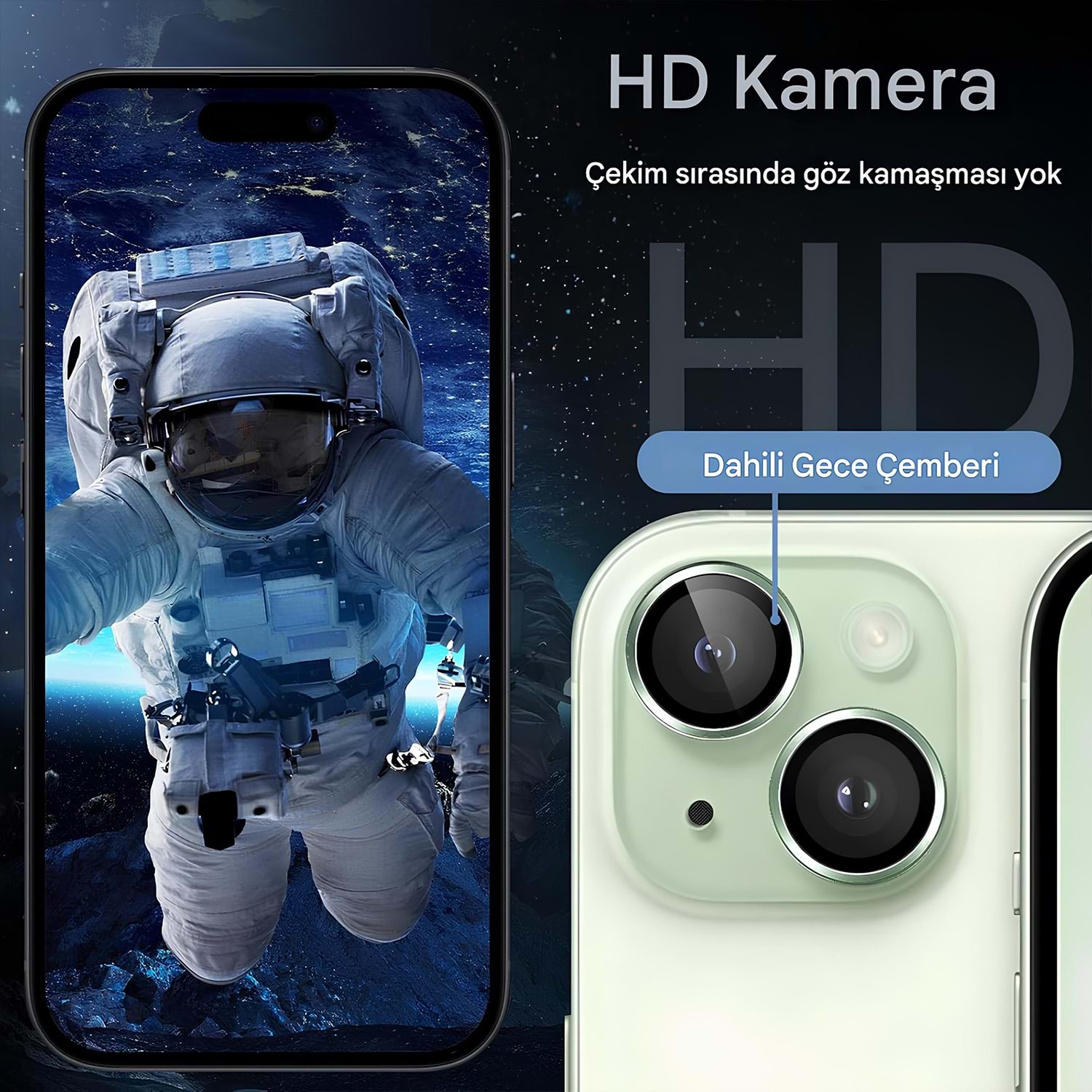 iPhone 15 ve iPhone 15 Plus için tasarlanan safir lens koruma, kamera adasını günlük çizik ve darbelere karşı korumaya yardımcı ince profilli, optik şeffaf bir kaplamadır. Fotoğraf ve video netliğini korumayı hedefler, flaş çekimlerinde parlamayı azaltmaya yardımcı olur ve çoğu kılıfla uyum sağlar.
