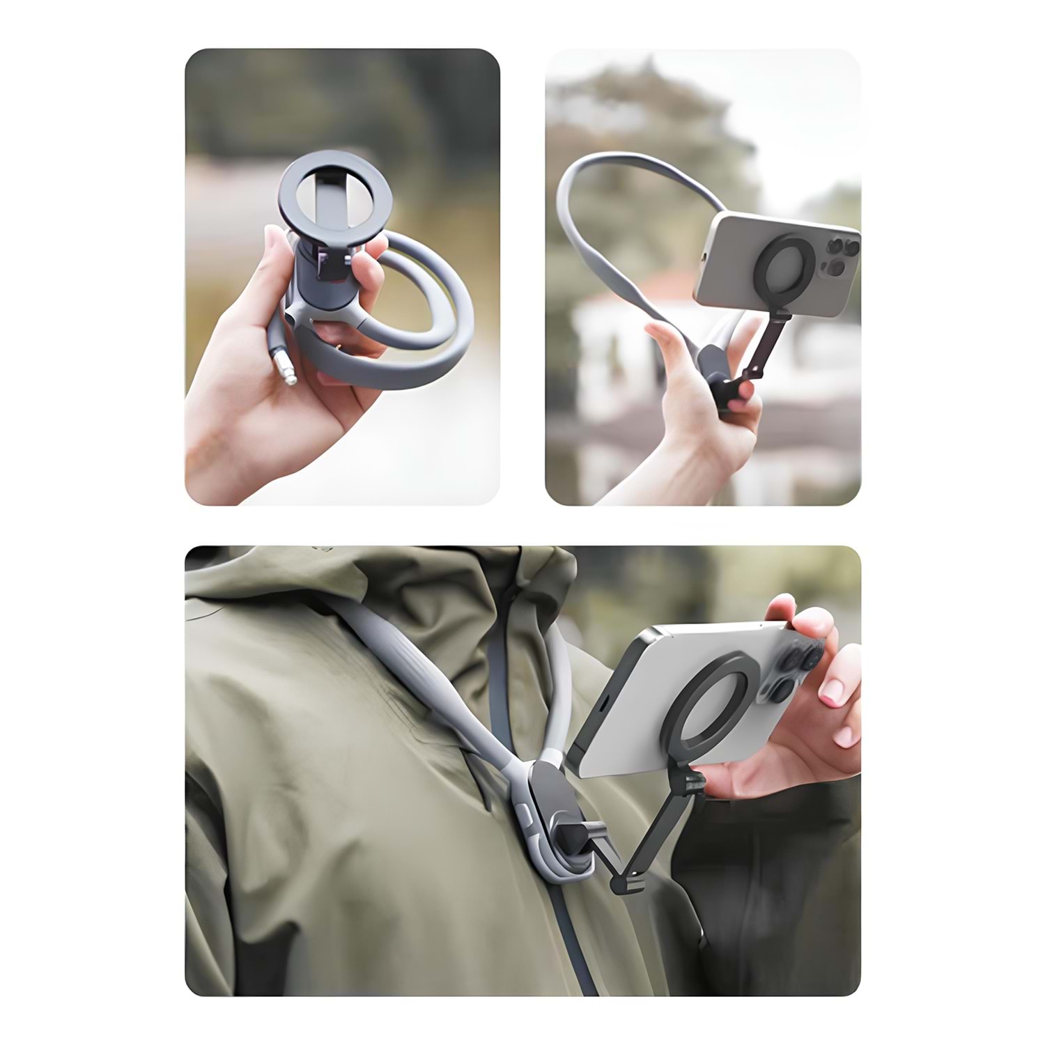 MT6083, MagSafe destekli manyetik tutucusu ve ergonomik soft silikon boyun askısı sayesinde telefonunuzu eller serbest kullanmanızı sağlar. Video izleme, canlı yayın, yemek tarifi takip etme ve spor aktiviteleri için ideal bir çözümdür.